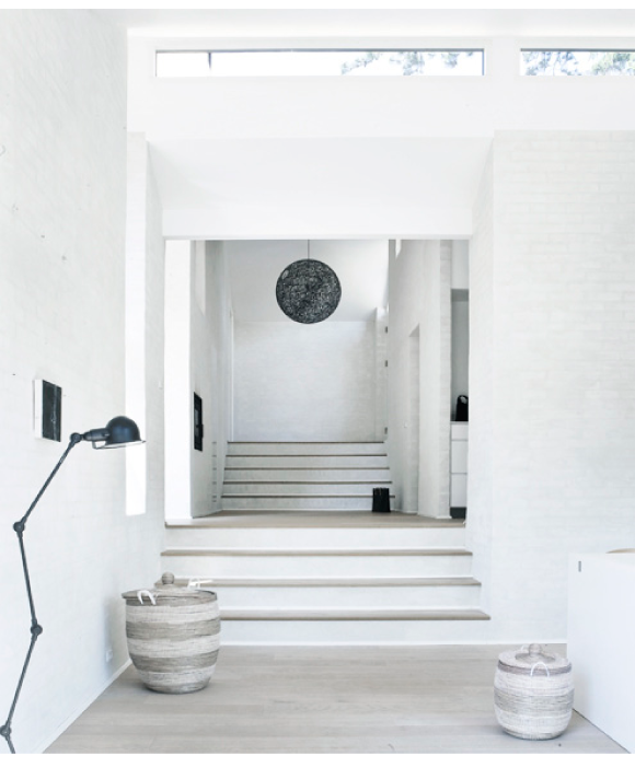 Super mooie Scandinavische woonkamer met witte muren. Klik hier voor meer foto’s.