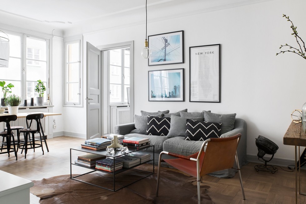 In dit kleine Scandinavisch appartement vind je hele leuke knusse hoekjes!