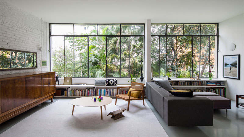 De Braziliaanse studio Cupertino Arquitetura heeft dit appartement uit het midden van de eeuw in São Paulo gerenoveerd. De studio was erop gericht om tijdens de renovatie veel van de oorspronkelijke esthetiek van het appartement te behouden. De muren werden gestript om het bestaande metselwerk erachter te onthullen, dat nu wit is geverfd. Bestaande zwarte stalen kozijnen werden gerestaureerd om de industriële stijl voort te zetten.